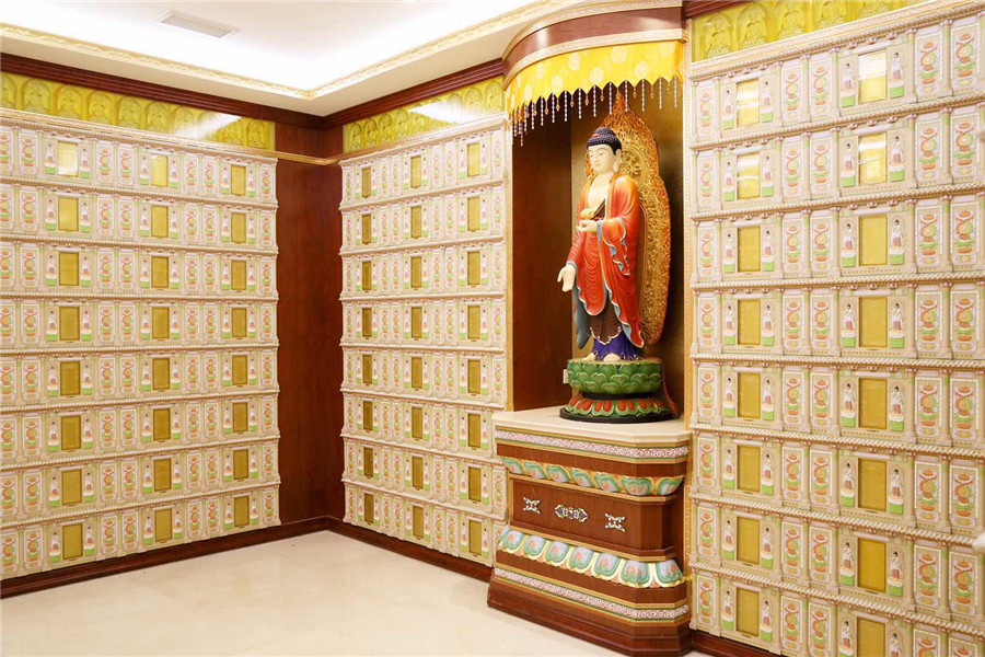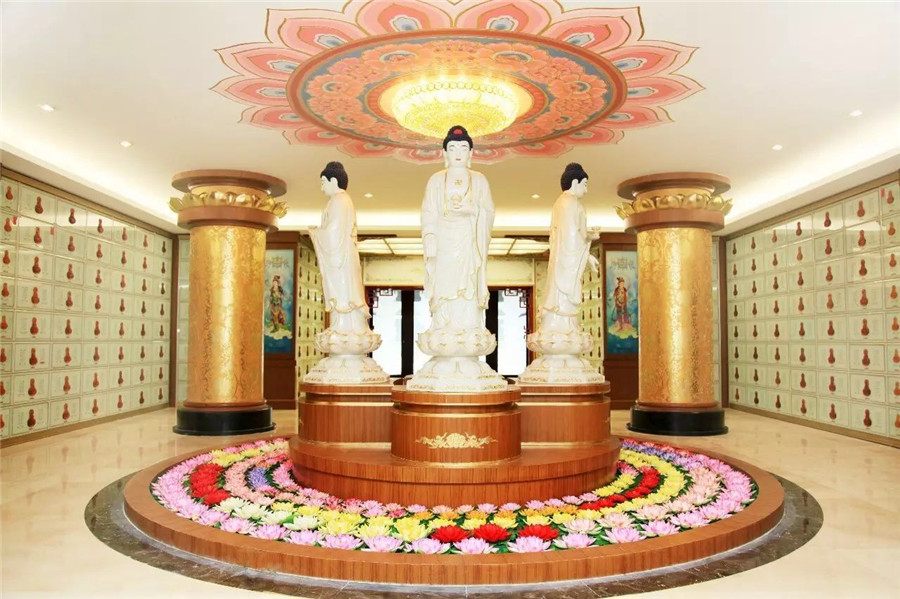 这里有优质的服务,玉佛寺寝宫一年365天全年对外开放,有专门工作人员陪同参观。寝宫还将传统习俗与高科技相结合,在官方网站设有虚拟祭拜厅、代客祭祀、平台咨询,优质售后,家属足不出户也能纪念先人,表达哀思。寝宫内:干净、舒适、庄严、安静。常年恒温20度空调,24小时滚动播放的佛乐,灯光照明,入住先人可长闻梵音。